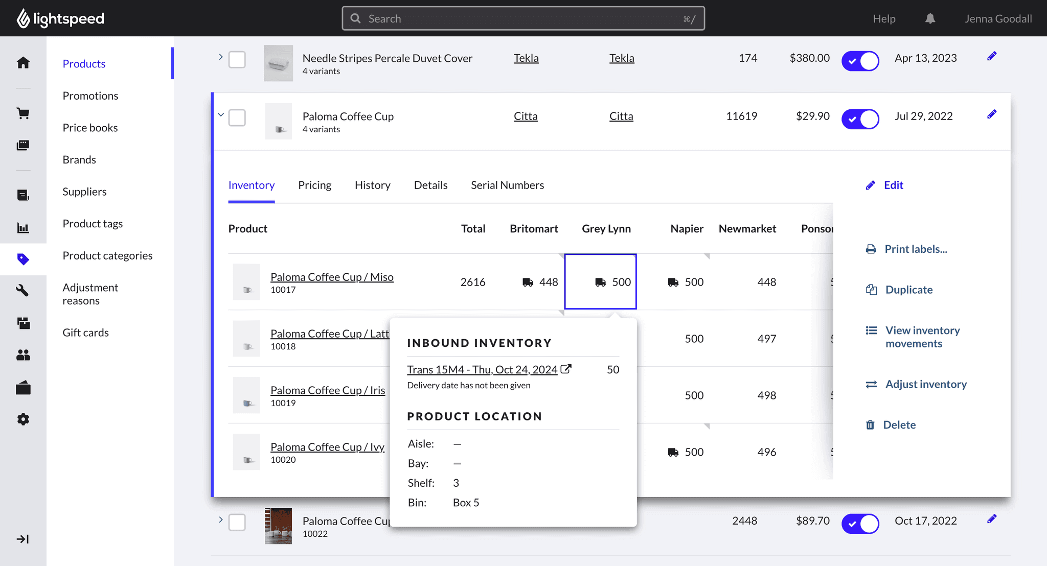 The most complex scenario occurs in product lookup, when a cell contains both inbound inventory and product locations.